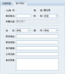 员工可设置部分常用的回复用语、礼貌用语等作为快捷回复语。使员工与客户的沟通更快捷、更高效。 ![]() 快速回复功能除了员工自行设置快捷回复语之外,还支持快速回复内容的共享,每个工号都可以在“我的回复”区域里右键点击,将自己的快速回复内容复制到共享回复中,便于其他工号在答复咨询时使用。 ![]() 客户资料:记录来访客户详细资料